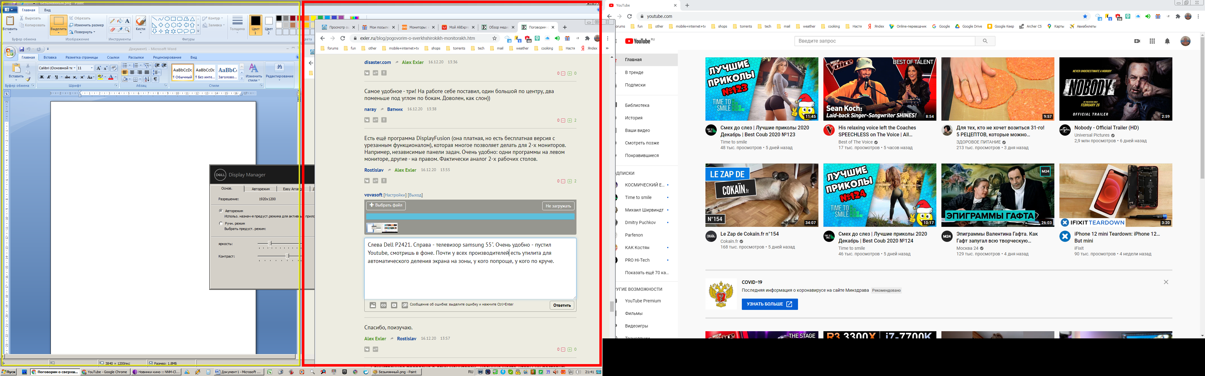 Основной же режим работы с тремя мониторами - на одном мессенджеры, на втором браузер и референсы, а в основном - рабочая программа.