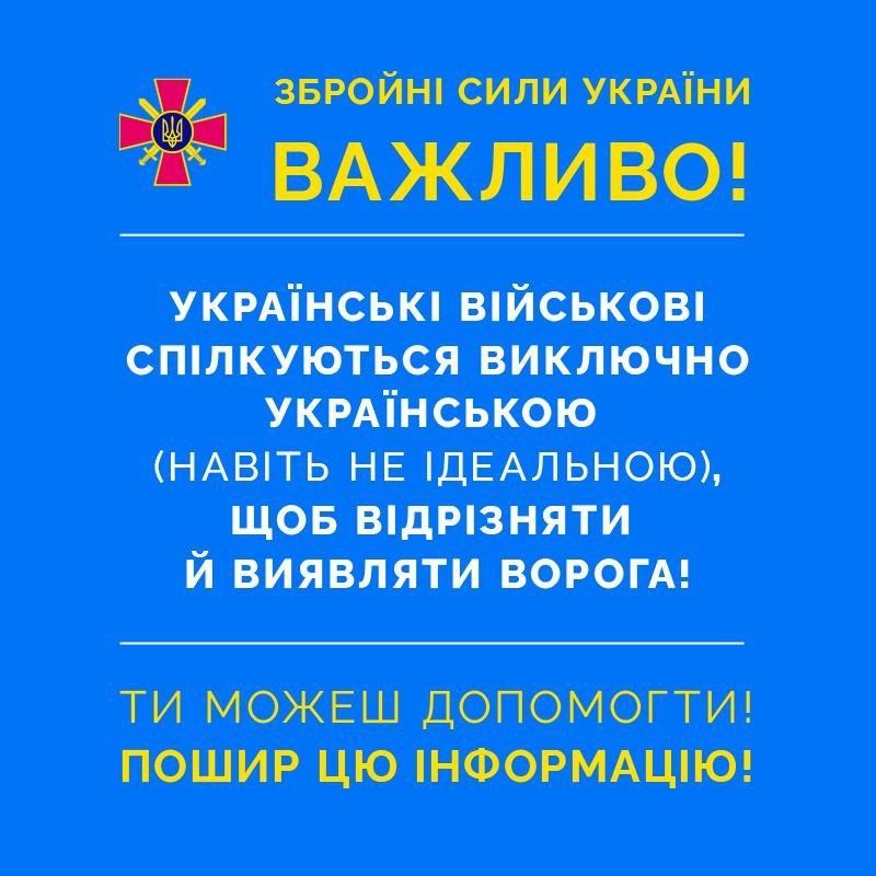 > Украинские военные изъясняются исключительно на (возможно не идеальном) украинском, чтобы выделять (?) и выявлять врага!