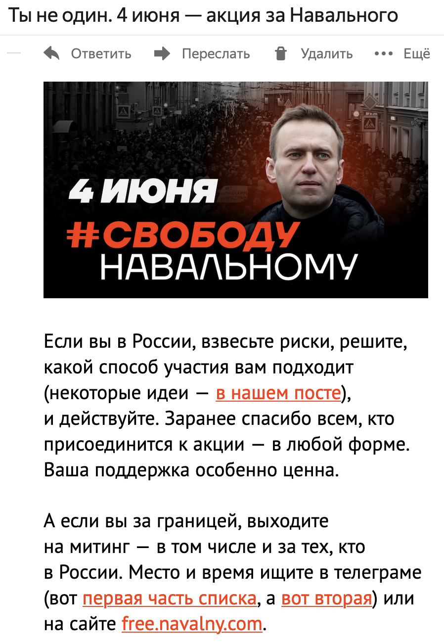 И выходить на протесты в России он не призывал. Передергивать не стоит.