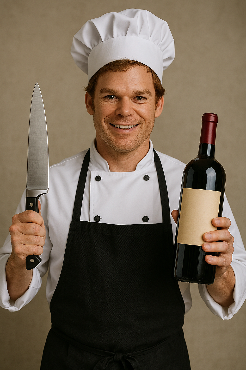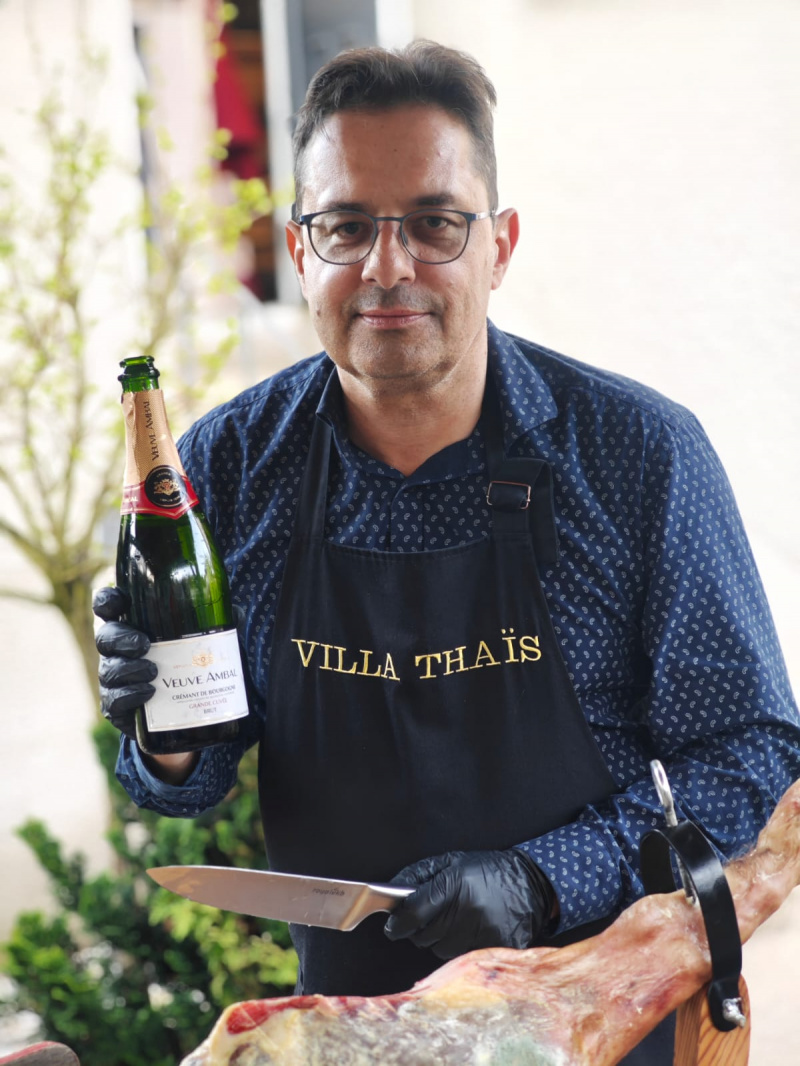 Я в Бургундии - типичный портрет в интерьере. В руке - обязательная бутылка "Вдовы Амбал" - нашего культового кремана де Бургонь.