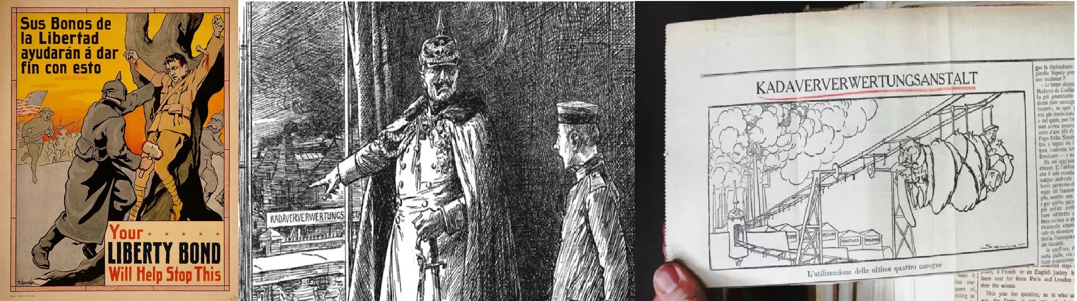 Наряду с якобы распятым канадским офицером, самый удачный пример чёрной пропаганды - якобы существовавшие в ПМВ немецкие фабрики по переработке трупов. Эта история в своё время произвела немалое впечатление, а послевоенные немцы оскорблённо указывали на неё как на пример того, до какой низости может дойти пропаганда.