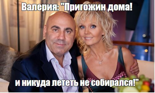 Иосиф Пригожин жив, слава богу, об этом только что сообщила певица Валерия, которая его осязала и теперь вроде как на сносях они садятся ужинать.