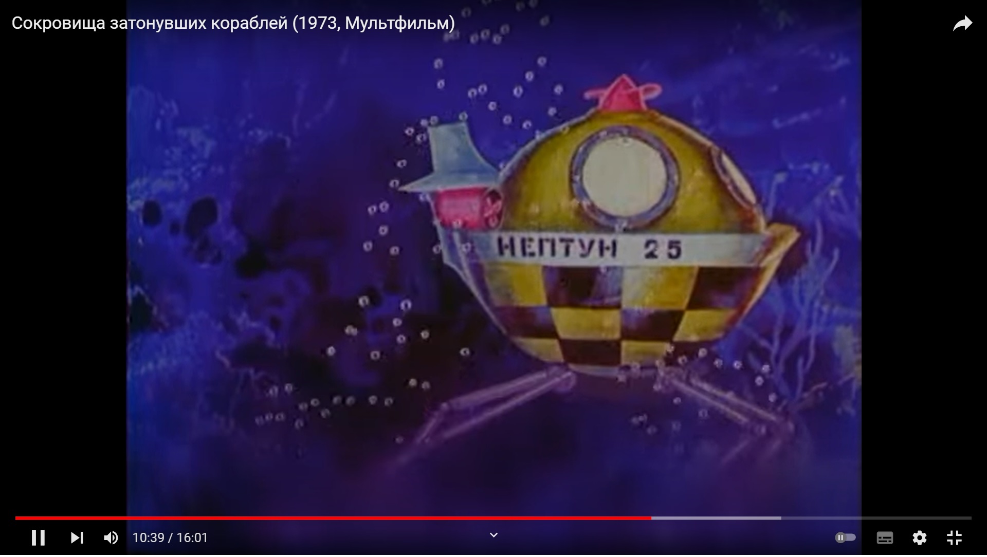 На 9-й минуте. Обратите внимание в какие цвета одета девочка и как называется их подводный аппарат.