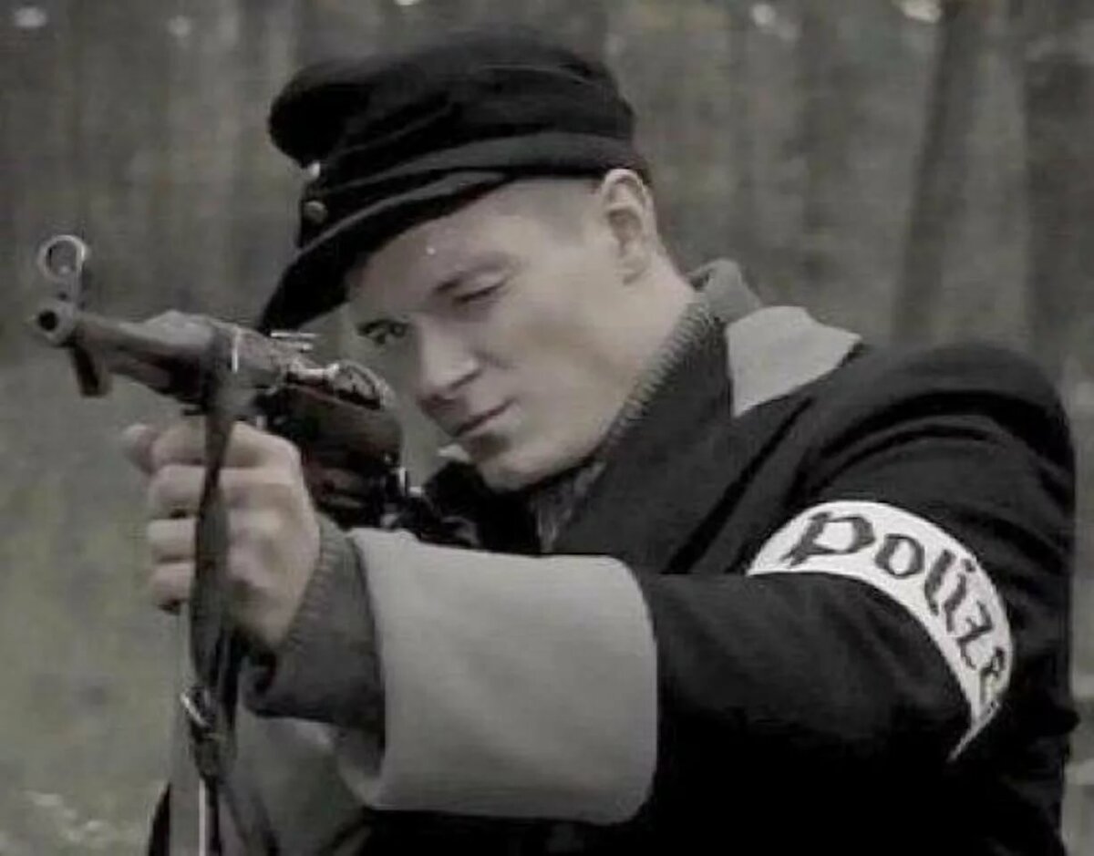 А повязка у полицаев, точно белая. С надписью.