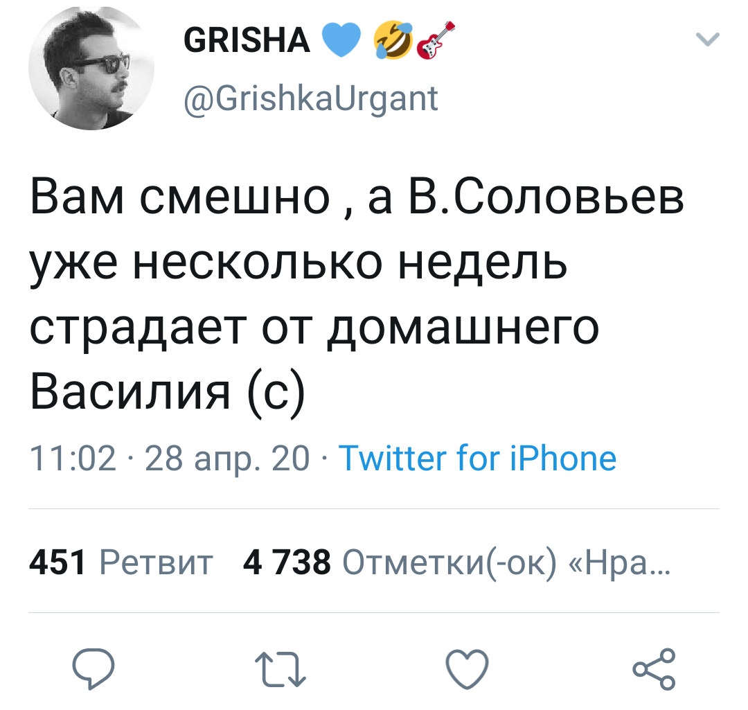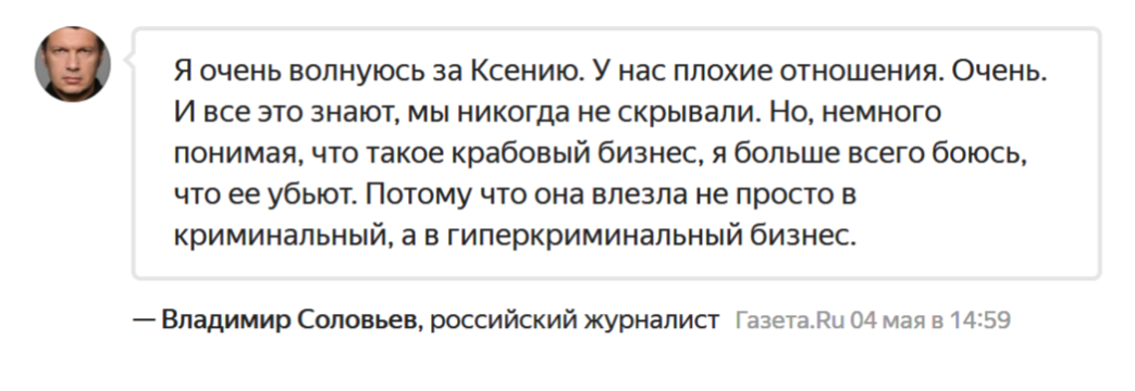По его мнению, это происходит из-за того, что «разные барышни, еще вчера взасос любившие одну кремлевскую башню», решили заработать на сетках Telegram-каналов и теперь видят со стороны него и его друзей конкуренцию.