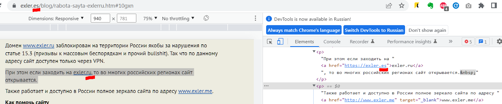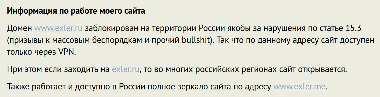 Все ответы на мои комментарии, уведомления о которых я получаю на свою почту, приходят в виде ссылок, ведущих на exler.ru. Не вопрос, я включаю VPN, но все-таки неудобно.