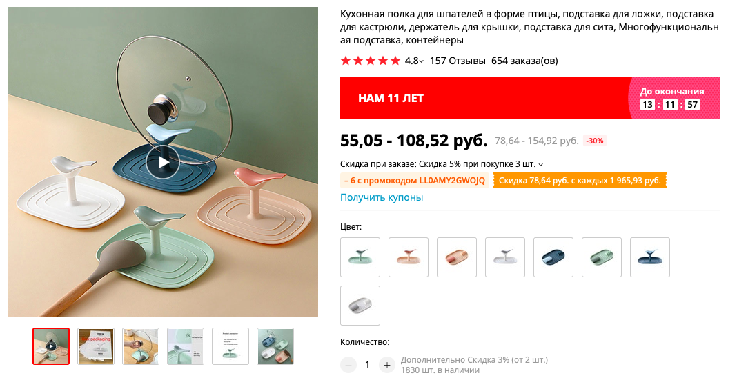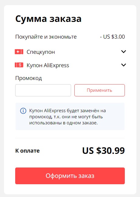 В-четвертых получаем скидку от площадки Алиэкспресс - 220,09 руб.Итоговая скидка: 531,17 руб.