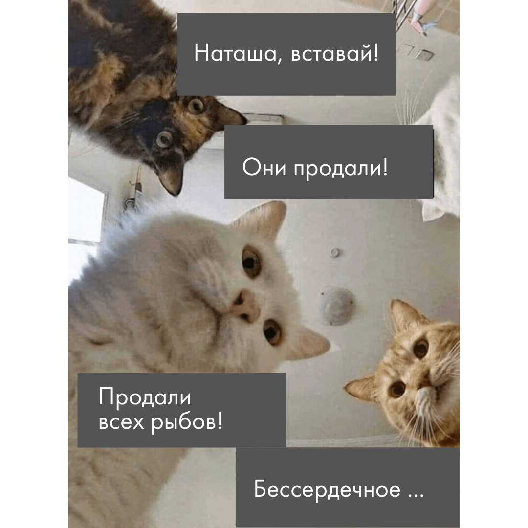 1. Хозяин чистит рыбу перед продажей и отдает головы+внутренности кошкам, а в конце дня раздает кошкам оставшуюся - тогда кошки будут просто сидеть и ждать (но это маловероятный вариант, судя по месту и типу продажи).