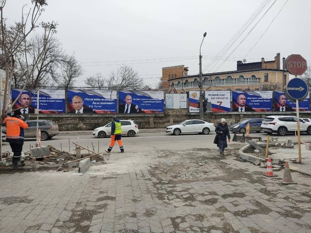 После массового ухода брендов рекламировать на улицах некого, поэтому в Симферополе с бордов за жителями наблюдает Путин.