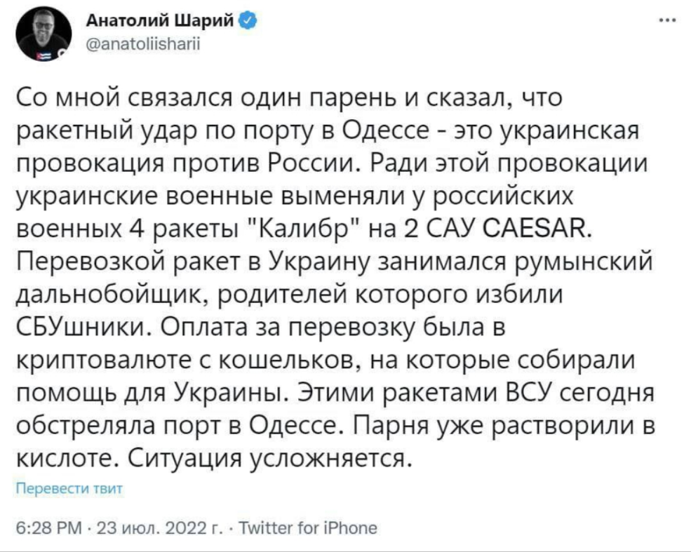 Но это проблемы не самого стёба – а людей, принимающих его за чистую монету, не так ли? Тем более, что там и сама "история" ну совсем уж гротескная – даже Шарий до такой степени не накурился бы... 🙂