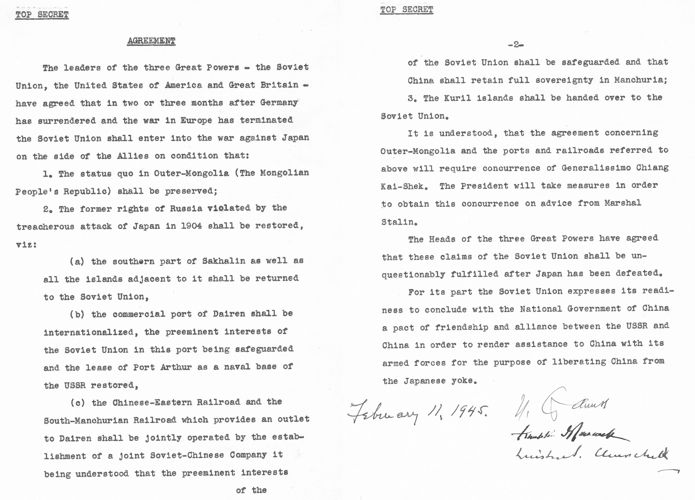 А ялтинские соглашения однозначно лишь обещают отобрать острова у Японии и отдать их этой группе государств.