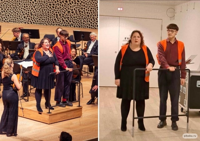 "Два псевдоборца за экологию попытались сорвать концерт симфонического оркестра, приклеив себя к дирижерскому пульту.