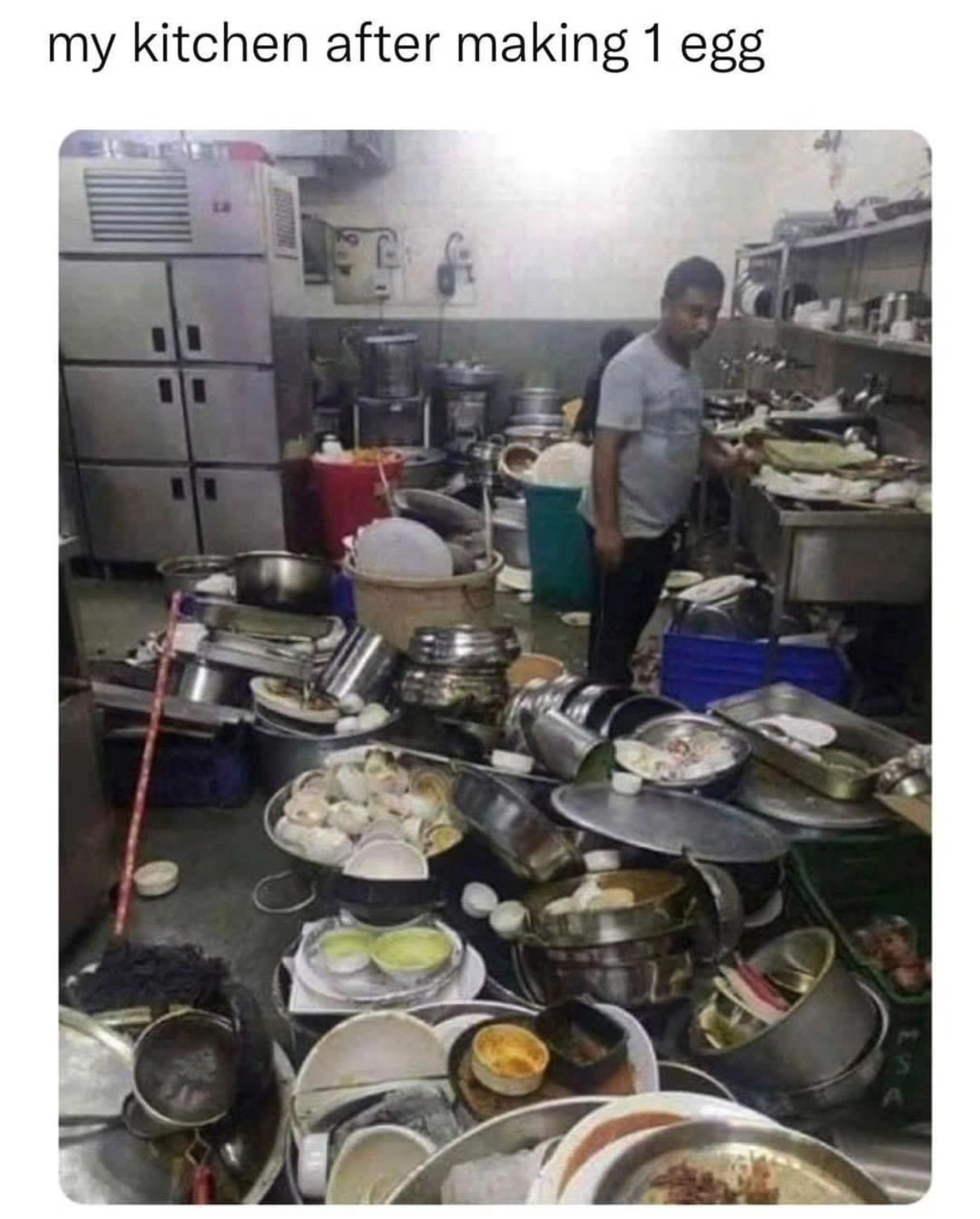 F: Я проколол в яйце дырку, выпил его, а пустую скорлупу стал греть в