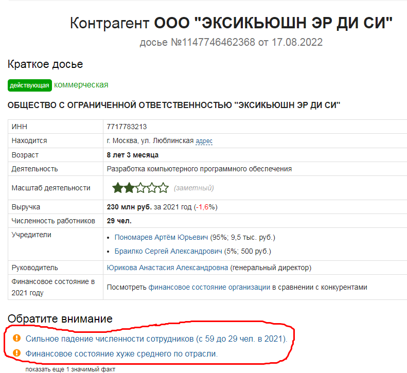 Компании 8 лет, выручка росла постепенно, т.е. какая-то деятельность там велась, не похоже на компанию пустышку, которая создавалась чтобы провести деньги по какому-то госконтракту.
