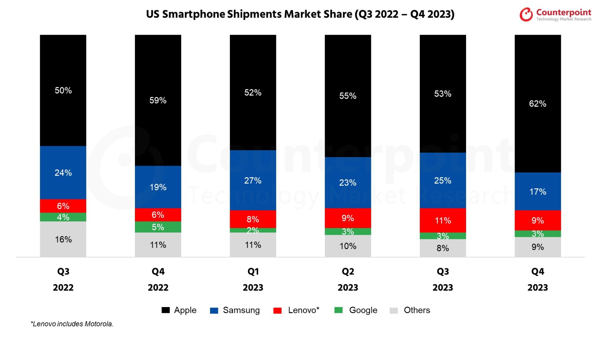 компания Apple ... в первом квартале 2024 года уступила лидерство