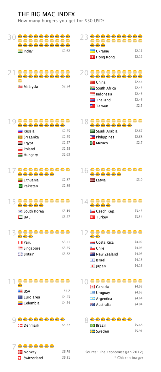 В нашей, многострадальной, стране интернетом это описывается на примере рабочего путиловского завода и стоимости/качества чарки водки и закуски к ней.