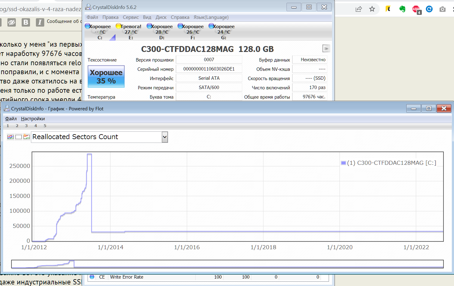 Из домашних HDD только пара WD Green имеют несколько reallocated sectors.