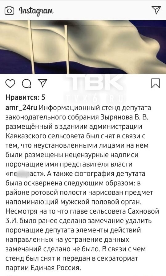 Это сам депутат указал: "По версии следствия, Малей, из личной неприязни ко мне, сняла со стены мой информационный стенд, нарисовала краской на нем мужской половой орган и написала слово «П…» (оскорбительное). А потом написала об этом в официальном аккаунте администрации Минусинского района в Инстаграм, сопроводив все фото материалом".