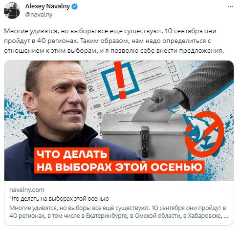 или постарался товарищ Албуров, но из него ясно, что Алексей Навальный считает Херсонскую и Запорожскую области частями России. Иначе бы он отметил этот тонкий момент в своем тексте. Ну там написал, мол лично я и ФБК несогласны с их присоединением к России и не считаем выборы там легитимными, включая Крым. Но нет.