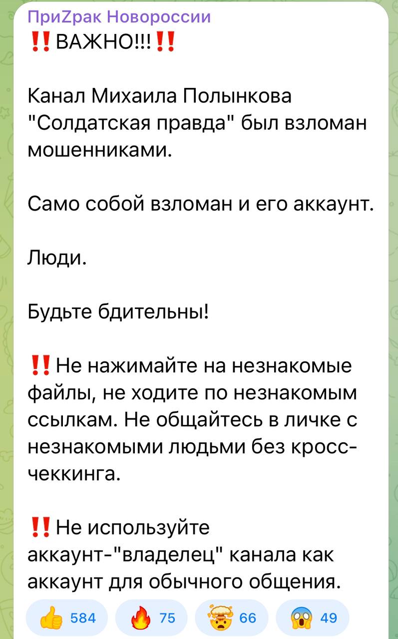 Вчера вот для напоминания гиркинцам, чтоб не рыпались, повязали ещё одного под предлогом фэйков об армии, которые он до этого писал в своем ТГ-канале практически с начала большого вторжения.