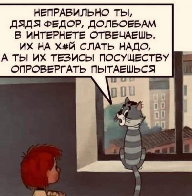 В целом, на лайки-дизлайки мне пофигу, но огорчает единственный момент: годами представители ФСИН и ФССП не могут мне дать вразумительный ответ, зачем в когтистую лапу куромутанта засунули фашину. Вопросом о проглоченном и ставшим аршином от глоток до клоаки (клоак?) законе я их даже не извожу. Тут хоть бы с фашиной для начала разобраться. Вот так и эти дизлайкающие существа: зашли, бросили по какашке, испортив воздух, и ушли. А ведь могли бы попытаться обосновать свое швыряние нечистотами и размазать меня, невежду, объяснив присутствие фашины в когтистой лапе и, наконец-то, утолив мое жгучее любопытство.