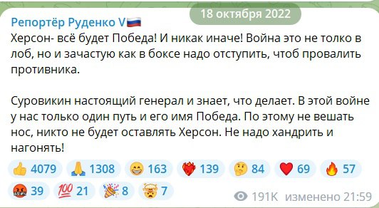Ну раскатали бы это сопротивление элементарно. Вон в Херсоне тоже были акции неповиновения первые 2 недели. Пока просто всех на подвал не кинули.