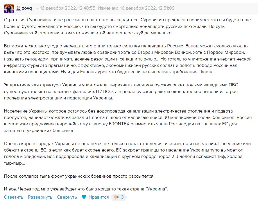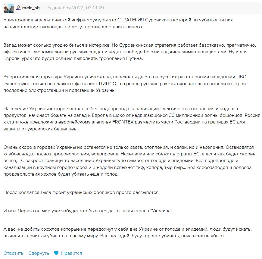 P.S.Моё оценочное мнение - росия схлопнется в кровавый ад, на выходе останется не более 25 миллионов населения на всех территориях, которые, кстати, будут погружены в тяжёлую экологическую катастрофу.