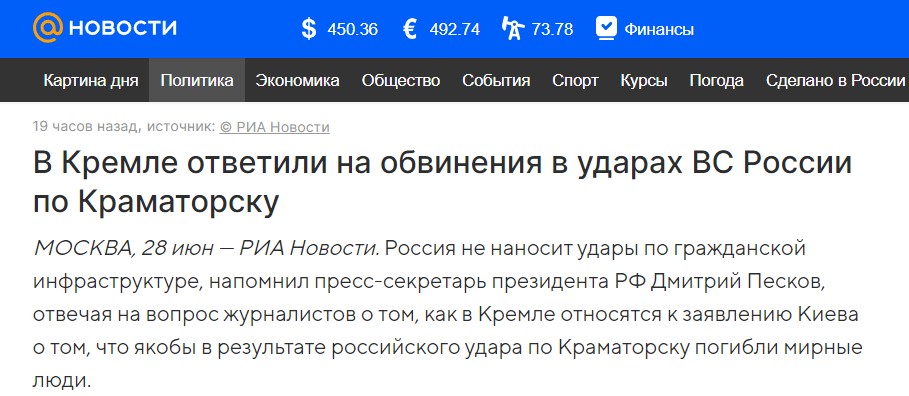 "The Russian Defense Ministry claimed on Wednesday that the target of the missile strike in Kramatorsk was “a temporary command post” of a Ukrainian army unit."