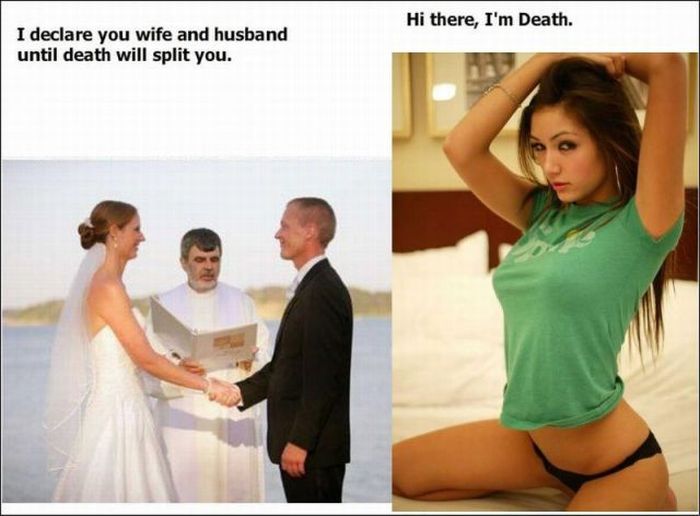 Вообще-то это часть официальной церемонии венчания в англиканской церкви. Фраза из свадебной литургии.