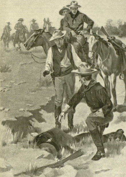 Произошло это в игорном доме старого Хусто Вальдо. Играли в покер, и не все играющие были между собой друзьями, как это часто случается в местах, куда люди приезжают издалека ловить на лету счастье. Спор разгорелся из-за такого пустяка, как две дамы; и когда дым рассеялся, выяснилось, что Малыш совершил неделикатный поступок, а его противник допустил промах. Мало того, что незадачливый дуэлянт не был мексиканцем: он происходил из знатной семьи, владевшей несколькими ранчо, был приблизительно одних лет с Малышом и имел друзей и защитников. Оттого, что он дал промах, - его пуля пролетела всего лишь в одной шестнадцатой дюйма от правого уха Малыша, - поступок более меткого стрелка не стал деликатнее."