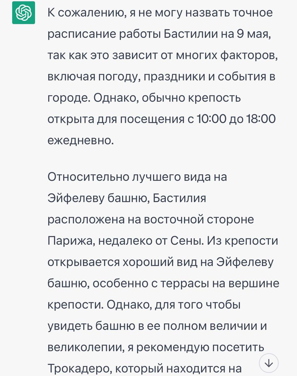Надіслано повідомлення. Хочу відвідати фортецю Бастилія. Порадь мені найкращий час для цього