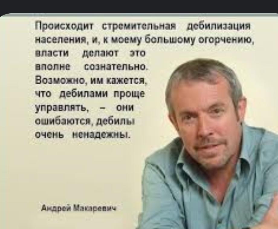А так... актеру 79 лет, всегда был совковым, вот и не заметил - гэбня подменила совковые ценности на фашистские. Уж не знаю, какие области мозга заблокированы и мешают 2+2 сложить - рф начала агрессивную войну, рф фюрер постоянно лжёт, законности в рф нет, есть феодализм.