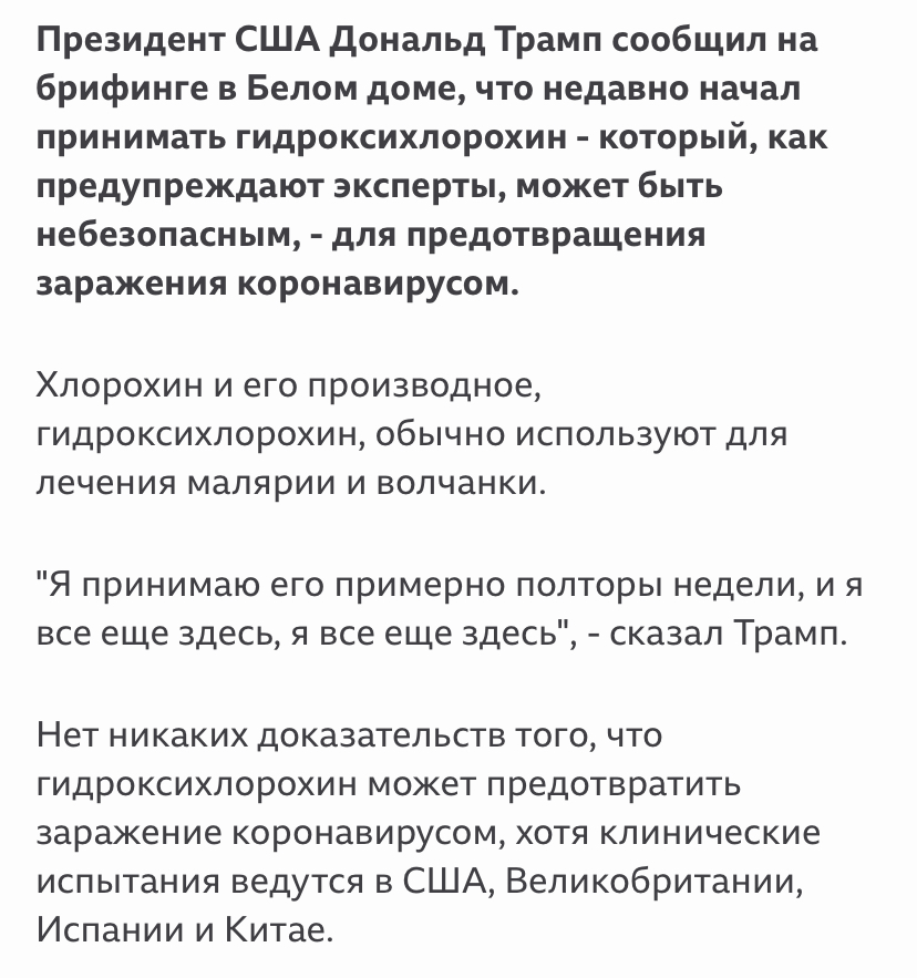 Но, по правде говоря, людей, которые при ковида пьют воду с лимоном, потому что нет лекарство "с доказанной эффективностью" можно сравнить с человеком, который умер от голода, держа в руках батон с просроченной колбасой. Но это личный выбор каждого, разумеется)