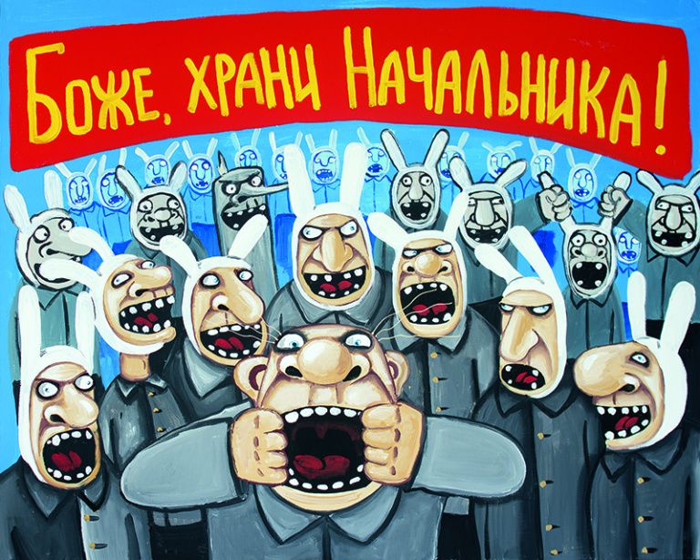 Какого начальника? Или русский уже не родной, с трудом понимаешь? Кого бы ни изобразили в таком виде, хоть твою любимую Меркель, это было бы точно так же мерзко.