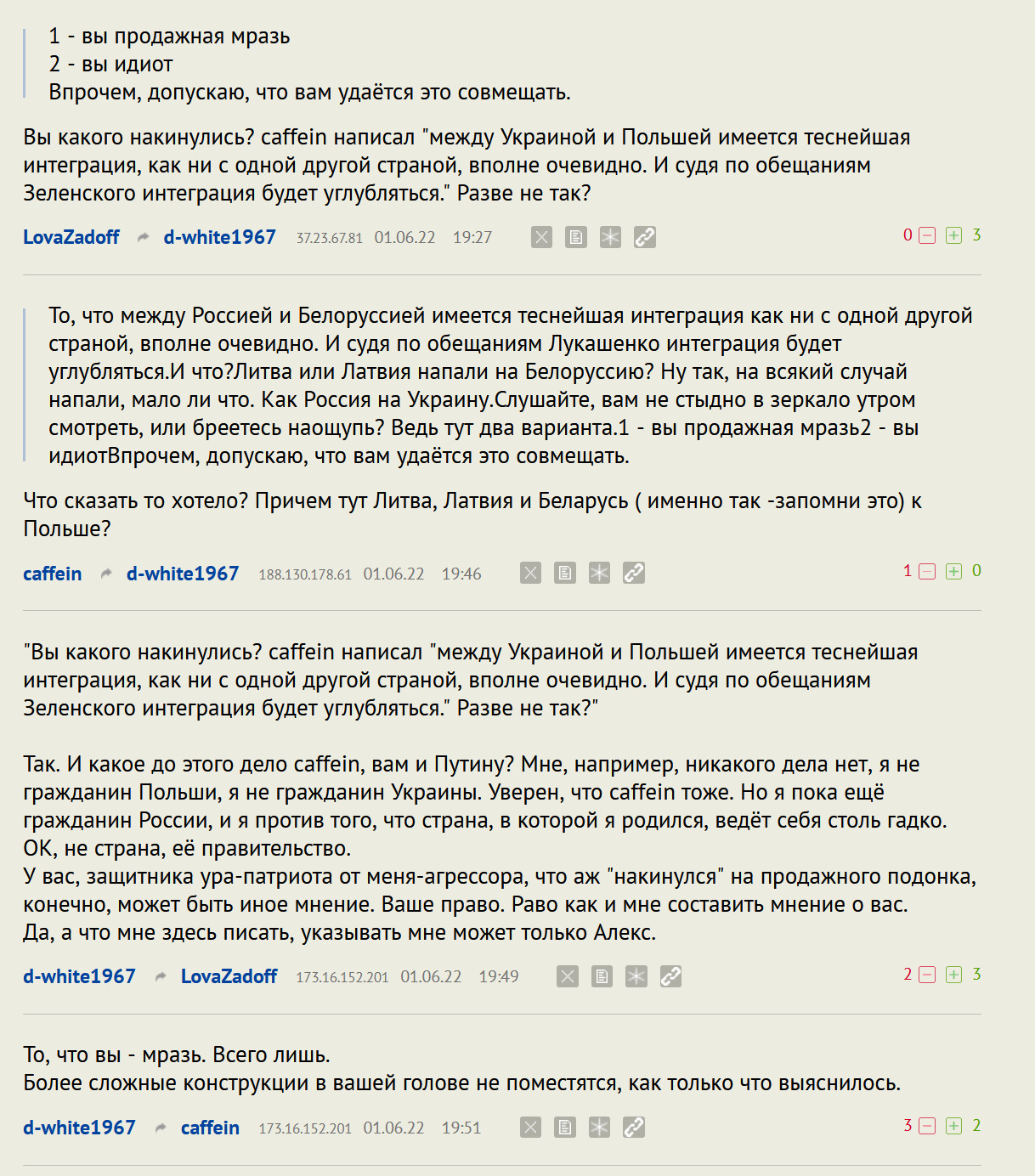 Где-то с месяц назад я одному посетителю, что сказал, что Украина сама напросилась на то, что там теперь убивают мирных жителей, сообщил, что на мой взгляд он мразь и подонок.