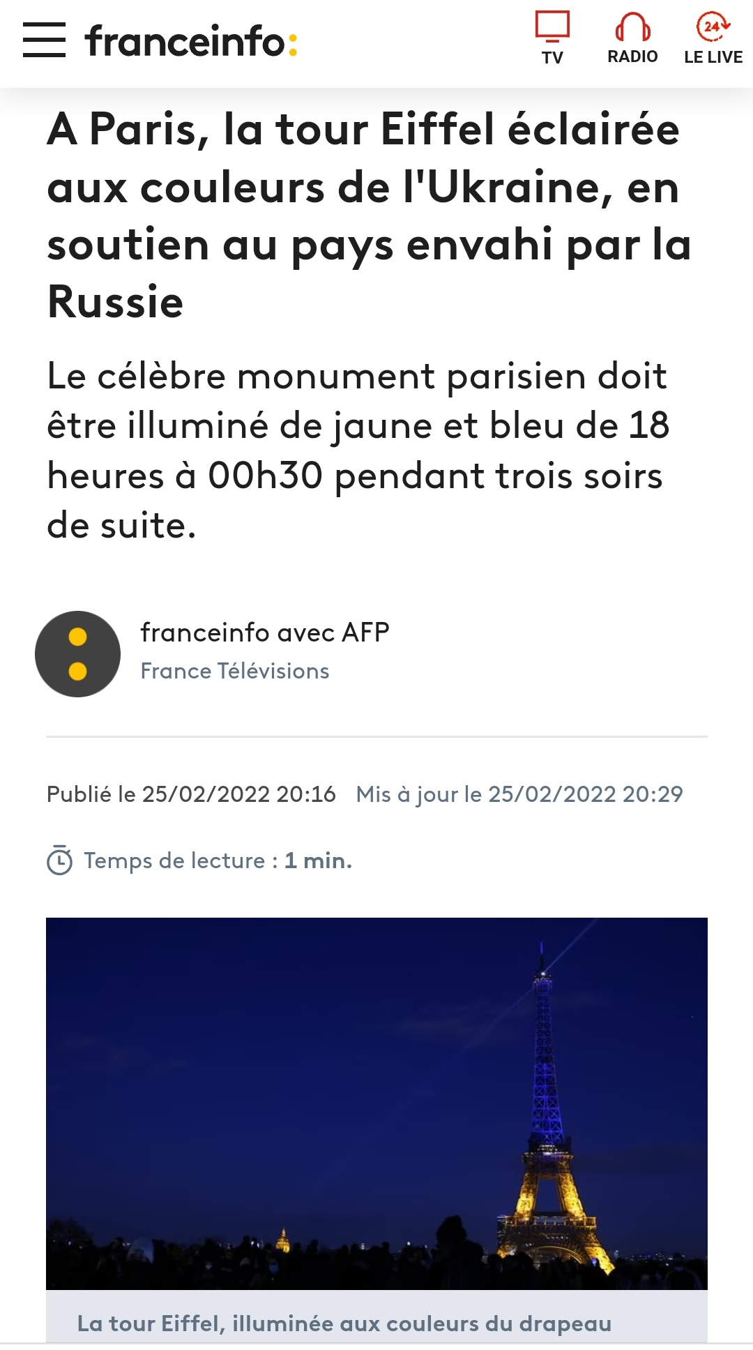 Аналогично, украинский флаг был вчера на заставке приложения для хранения вакцинального пасса. А это приложение стоит у более чем 10м французов