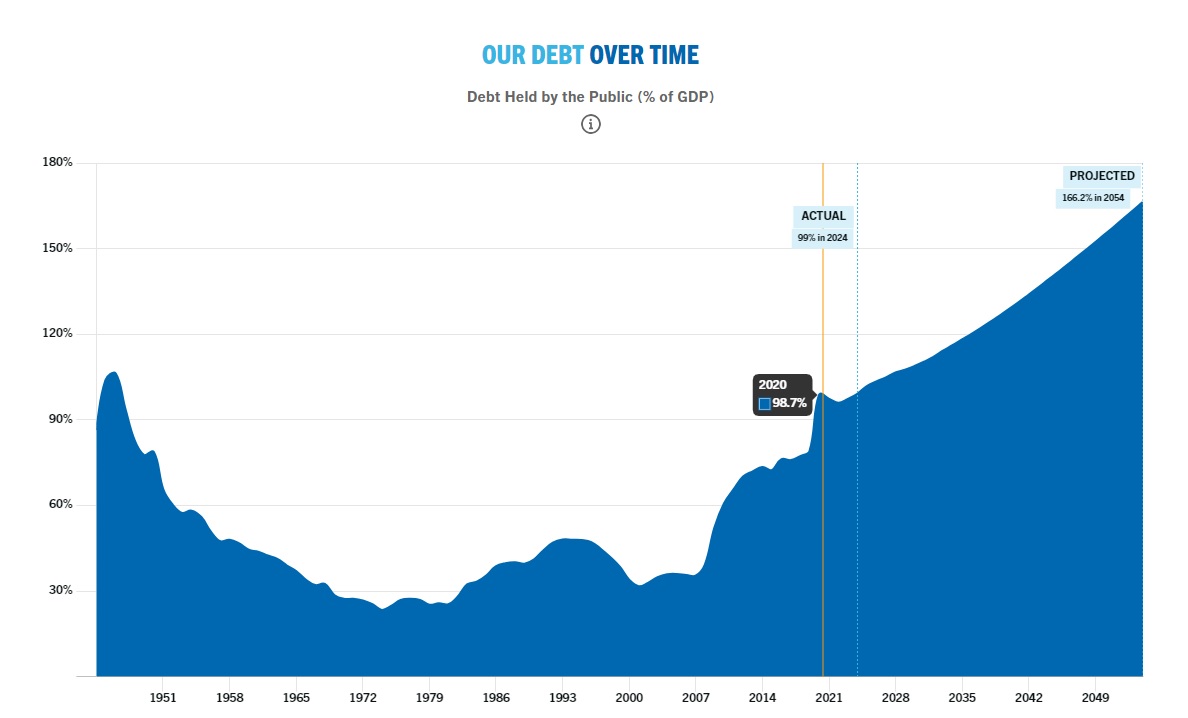 Но даже два обсуждаемых персонажа... Дело в том что Трамп оставил госдолг на таком уровне за один срок, что Байден, сначала немного его снизивший, за два срока так пока и не поднял его даже на этот же уровень.