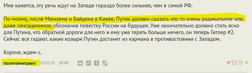 Шлосберг, которого ты дураком считал, ещё до начала выступления Путина сказал: это будет начало предвыборной кампании 2024 года. Так оно и есть. Сплошные обещания и долгосрочные планы.