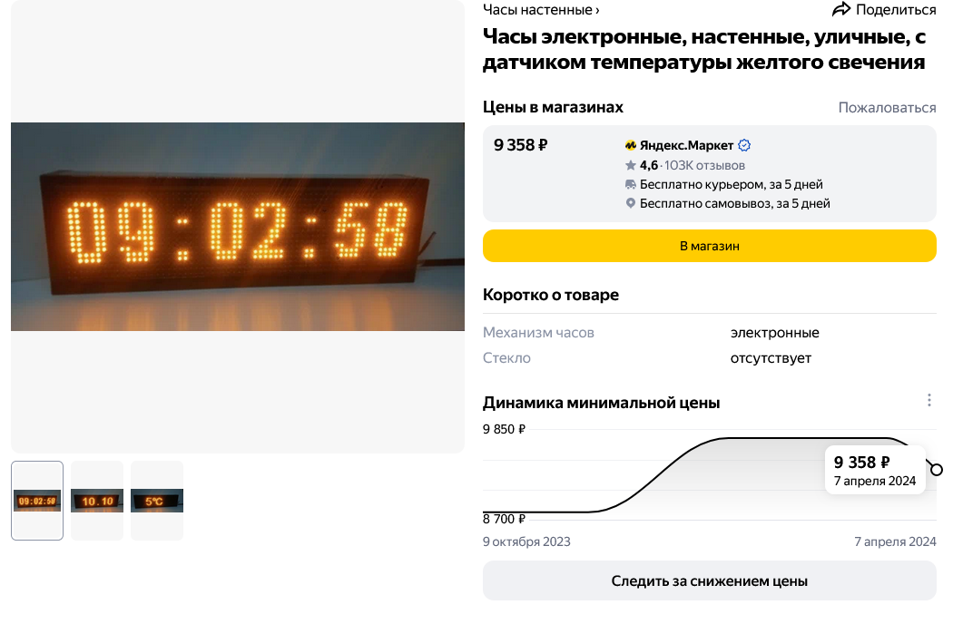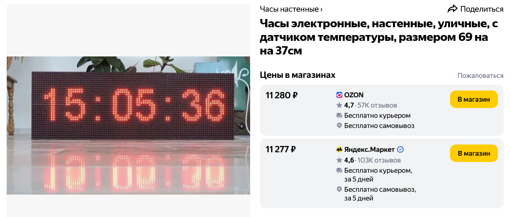 За 120 евро можно купить Вуличні фасадні світлодіодні годинник з датчиком температури і пультом управління
