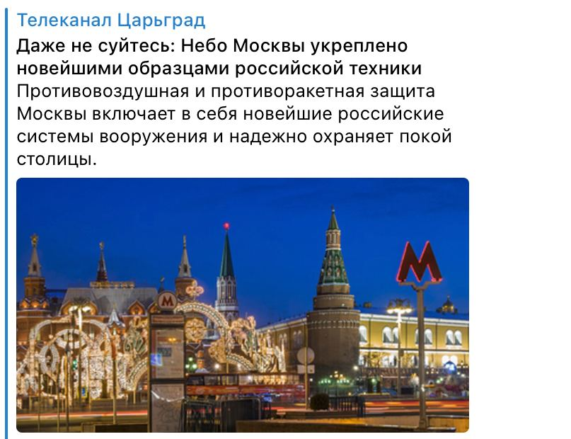 Дрон якобы "сбили" над Кремлем. Есть видео на котором его ведут в кадре и он красиво так "сбивается", правда совершенно не понятно кем и как. Скорость дрона не просто смешная, она вообще никакая, и черт с ней со скоростью, но взрывается он ровно так как взрывается имитатор стомиллимитрового выстрела. Классическая вспышка, именно вспышка, и облако характерно чёрного цвета развеивающегося в темно серый - так горят черные пороха используемые в имитаторах. Если бы взрывался тротил, или гексоген, или любая армейская взрывчатке, то был бы взрыв, почти без огня, с очень небольшим выбросом твердых частиц и серого дыма. Собственно говоря дым должен быть серым, так как при детонации, взрыве, углерод используется почти весь, а при горении только часть, не окислившийся углерод дает черный дым.