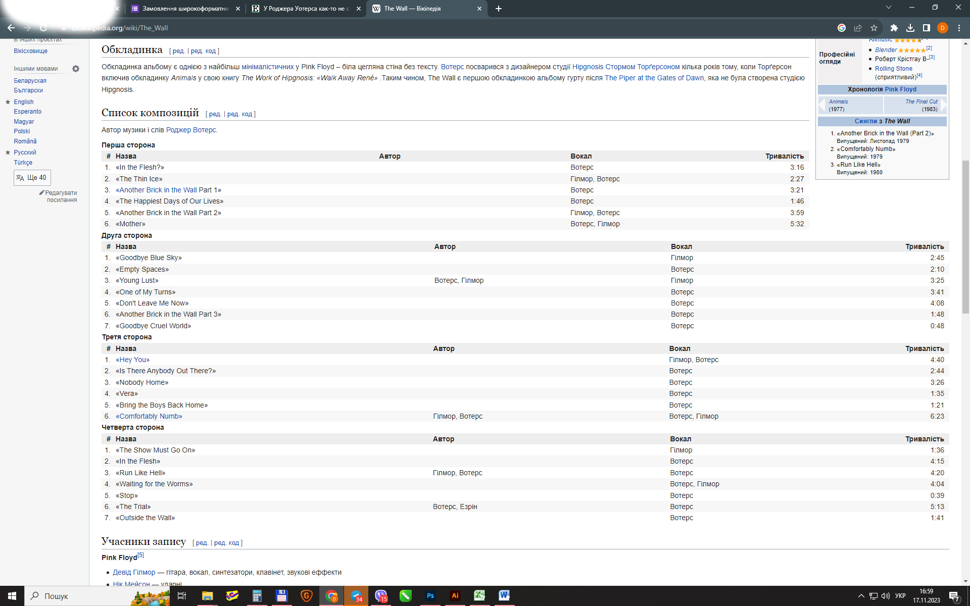 Так и с Уотерсом. Вот поставил ты Стену, слушаешь и начинаешь думать, что понимал раньше все не так, а это животное думало совсем не о том, что тебе казалось в юности, а вот про все эти вещи, что сейчас открылись...