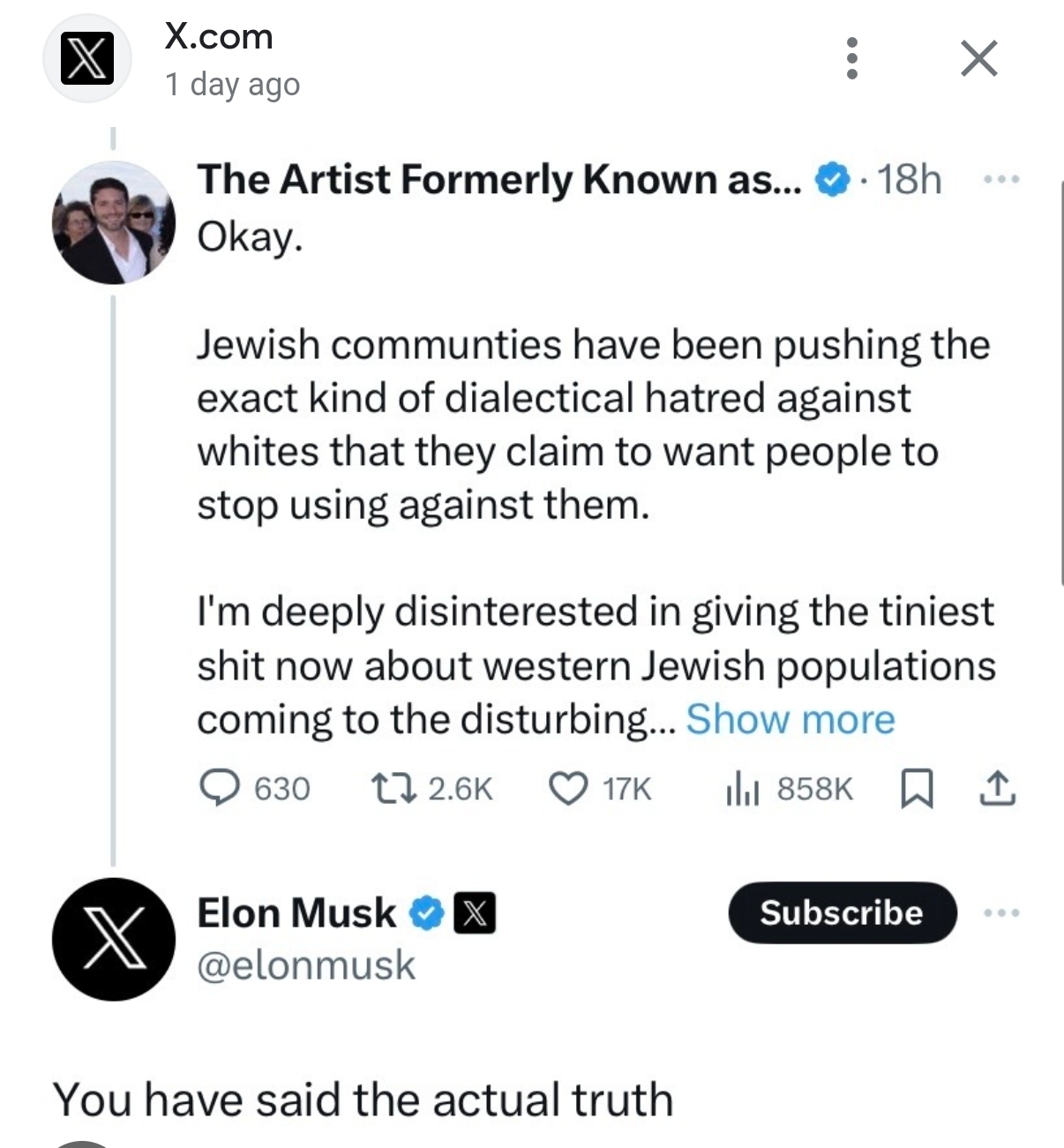Слова справа они может и не имеют, но их философия намного ближе к экстремальным правым, чем к кому-то ещё. То есть, получается наоборот - не они слово имеют, а лозунги дебилов типа Трампа у них находят отклик. Это, кстати, практически главная моя претензия к рыжему - его "милая непосредственность и прямолинейность" и вера в свободу слова (пока это его слово, привет Элону Ривовичу) развязала языки (и не только) всякому дерьму. Примеров тому легион и сейчас мы один из них и обсуждаем.