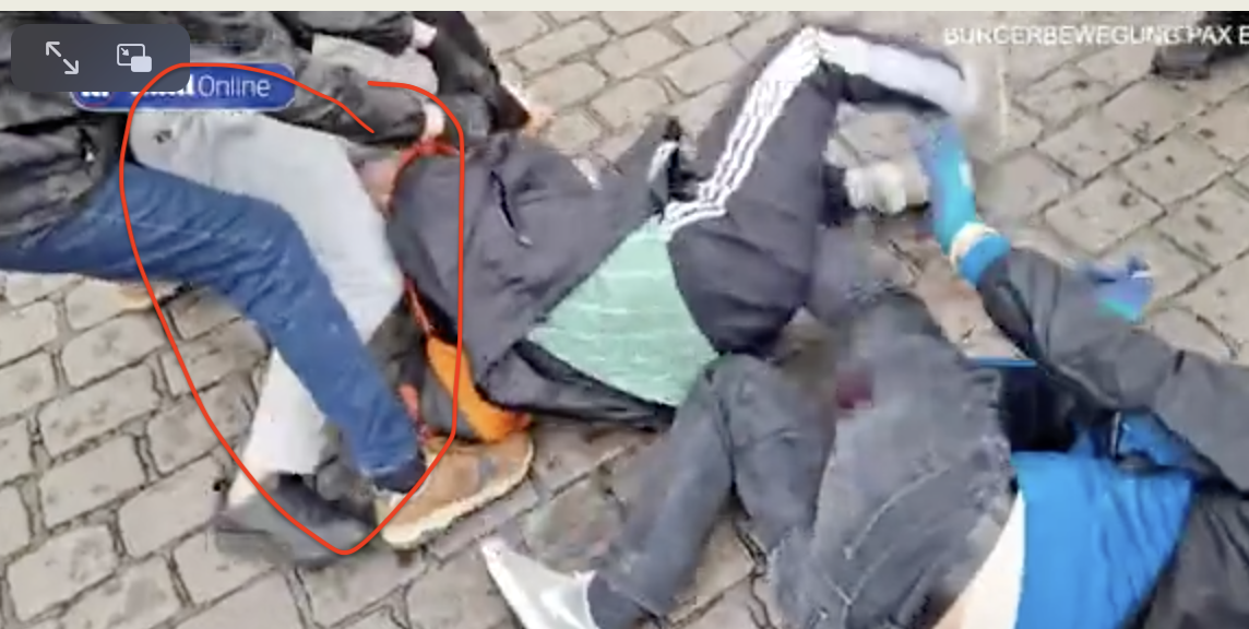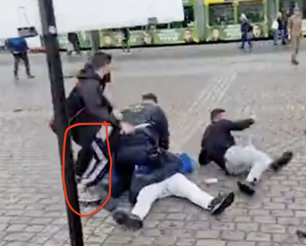 На втором видео четко видно, что немец в синей куртке на другого напал, не на мигранта!