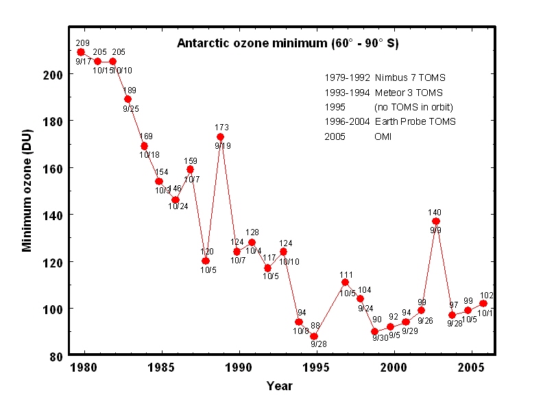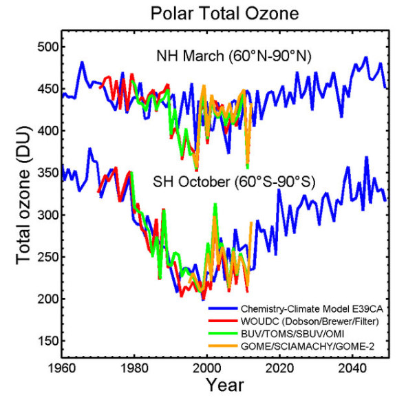 И повторю в который раз, накопление озоноразрушающих веществ идёт быстро, поскольку они сразу попадают в атмосферу, а вот эффект от снижения выбросов растянут на десятилетия, поскольку эти вещества остаются в атмосфере на десятилетия, а то и на столетия, поэтому возврат к выбросам уровня до 60-х хоть и остановил снижение уровня озона и перевёл это снижение в небольшой рост, но УЖЕ находящиеся в атмосфере вещества будут "выветриваться" ещё не один десяток лет.