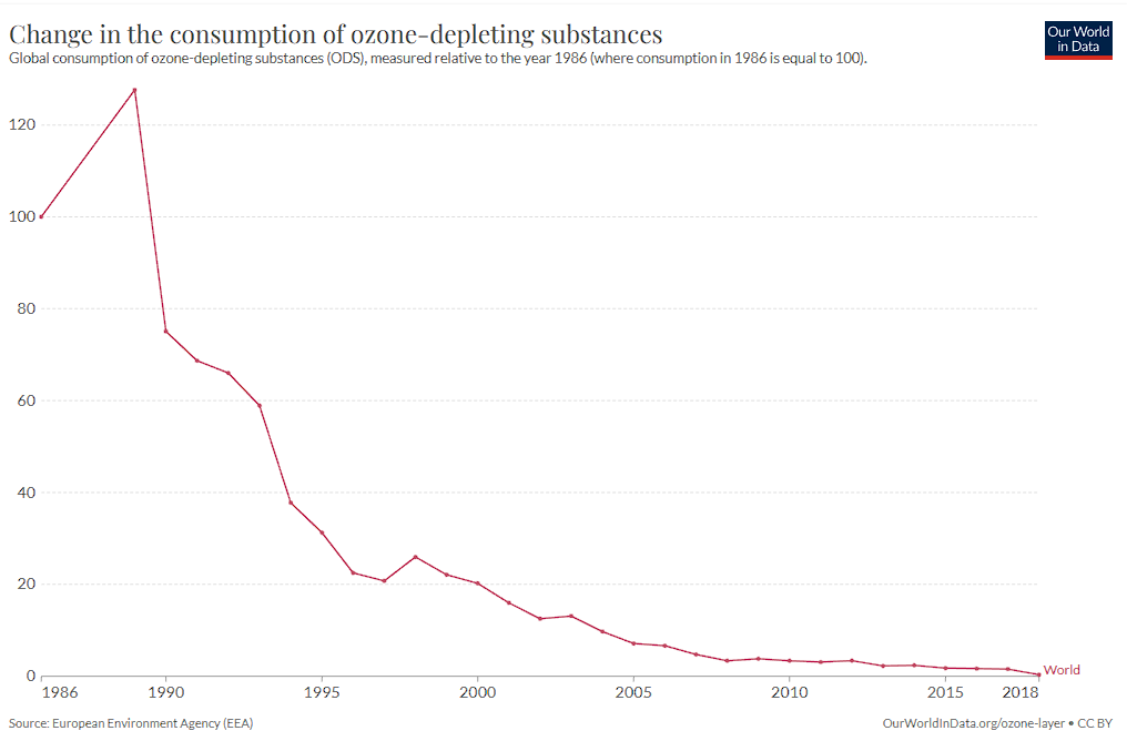 Update: срок жизни в атмосфере различных хладагентов десятки, а то и сотни лет, так что процесс восстановления озонового слоя довольно медленный и ожидать мгновенного эффекта не стоит.