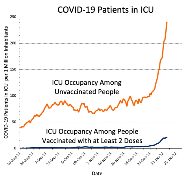 Приведены данные по состоянию на 13.01.2022 среди тех, кто заразился на промежутке от четырёх до двух недель ранее данной даты (с учётом того факта, что необходимость в госпитализации может возникнуть вплоть до двух недель после заражения).