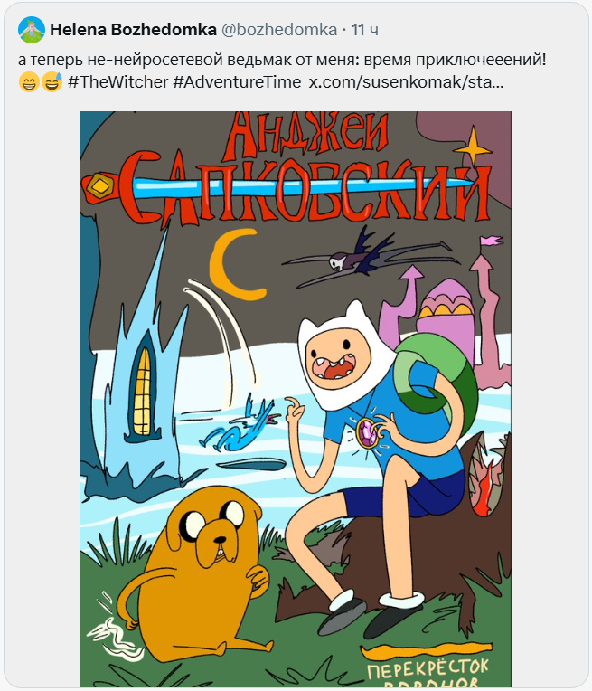 Зацените дизайн обложки. А и действительно, зачем солидному издательству тратиться на нормального художника? Слепили какую-то явную хрень в Copilot - и так сойдет. Но скажем спасибо, что у Ведьмака все-таки пять пальцев, а то, знаете ли, разные случаи бывают. Медальон особенно хорошо вышел. Кто скажет, что это не голова волка, пусть первый бросит в меня печенькой.