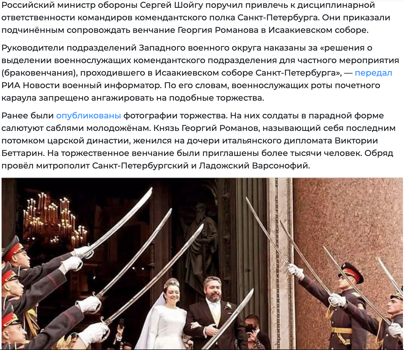 Охрана - государственная, венчания. - в Исаакиевском, ресторан - пригожинский. Супруги собираются жить в России.