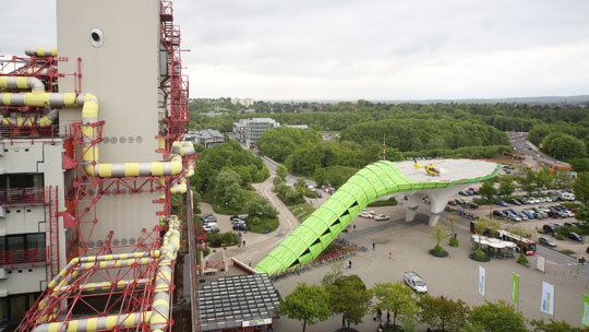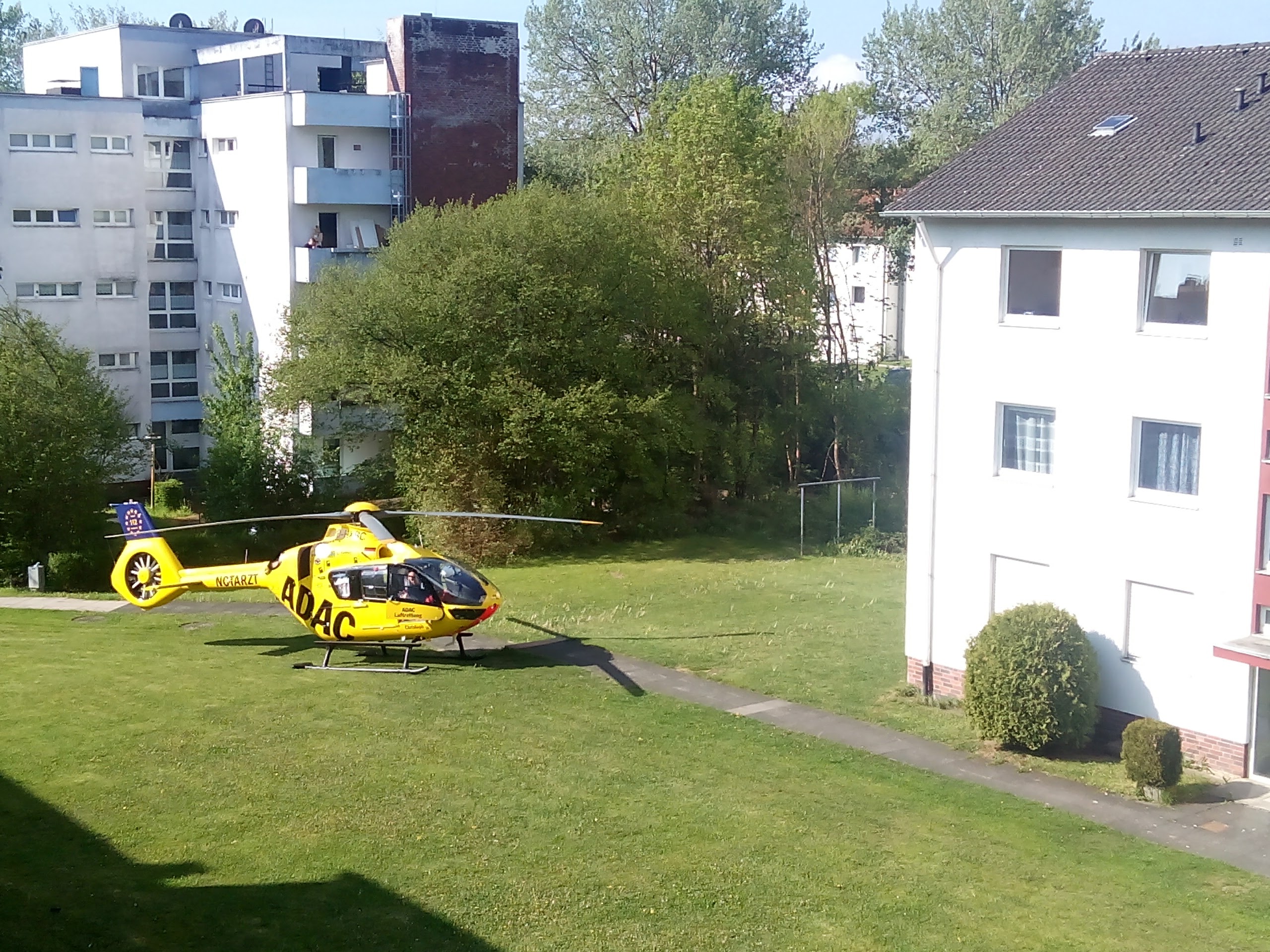 Однажды ADAC вертолёт сел на лужайку между трехэтажными домами.