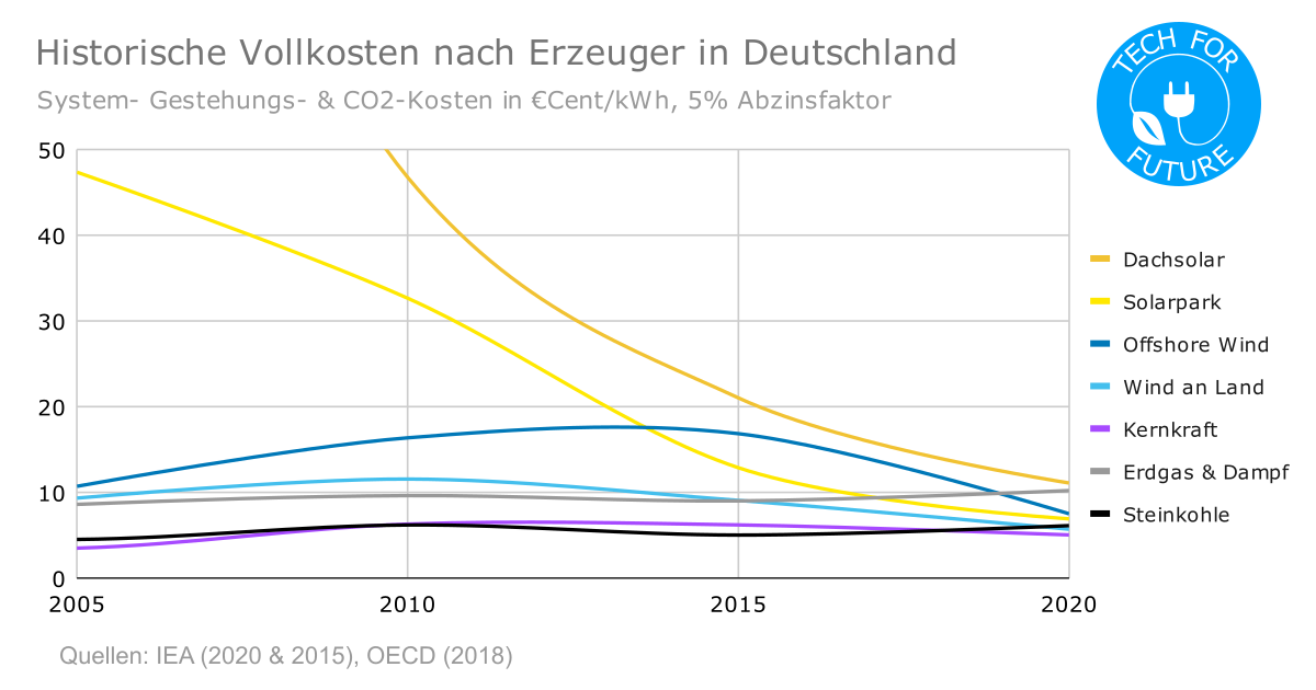 К 2030 г. цена электроэнергии ветряных электростанций снизится до 5,2 руб./кВт ч, солнечных – до 7,5 руб./кВт ч, тогда как на АЭС – вырастет до 7,5 руб./кВт ч